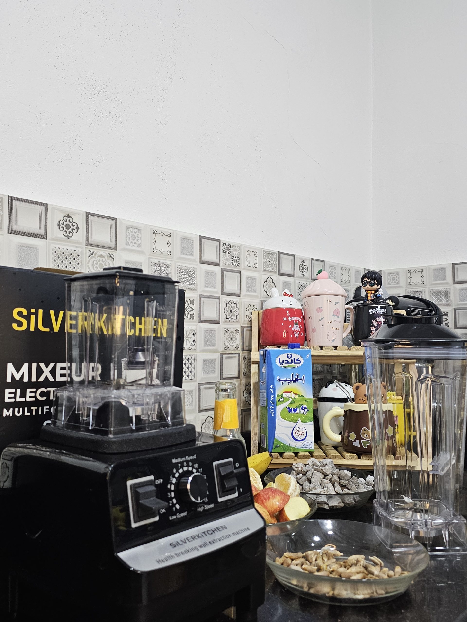 خلاط عالي الأداء مزوّد بكأسين غير قابلين للكسر، مناسب للاستعمال اليومي والمهام الثقيلة.